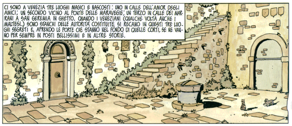 Inizio questo articolo con una citazione del bellissimo racconto a fumetti: «Favola di Venezia» di Hugo Pratt. Al termine di una vicenda intricata e onirica il protagonista del racconto, il marinaio Corto Maltese, trova una gemma magica, la «Clavicola di Salomone», nel Ghetto di Venezia, che gli permette di andare «in posti bellissimi e in altre storie» come recita la didascalia della vignetta che ho scelto come immagine in evidenza per questo articolo.