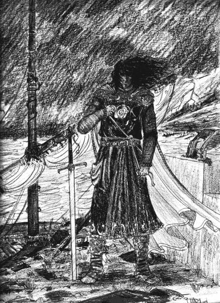 “Non fu tuttavia il terrore delle vele provenienti da Umbar a colmare il nostro cuore di panico, né l’udire il suono di centinaia di corni echeggiare nella calma aria del mattino – riferì il messaggero – ma la visione di due oscure figure, quali mai la nostra gente aveva scorto dacché la città era stata fondata. Esse si ergevano sulla poppa di una fra le navi più splendide che i miei occhi abbiano mai mirato; lunga quaranta metri, le sue lucide fiancate nere lambivano l’acqua e tuttavia sembravano sfiorarla appena; letale era però il suo equipaggiamento bellico e le sue baliste ripetutamente crivellavano di colpi i nostri bastioni. Feroce fu l’attacco ma non meno disperata la nostra difesa; scagliammo frecce in gran quantità e numerose navi presero fuoco, sicché parve che le acque del fiume stesso bruciassero.