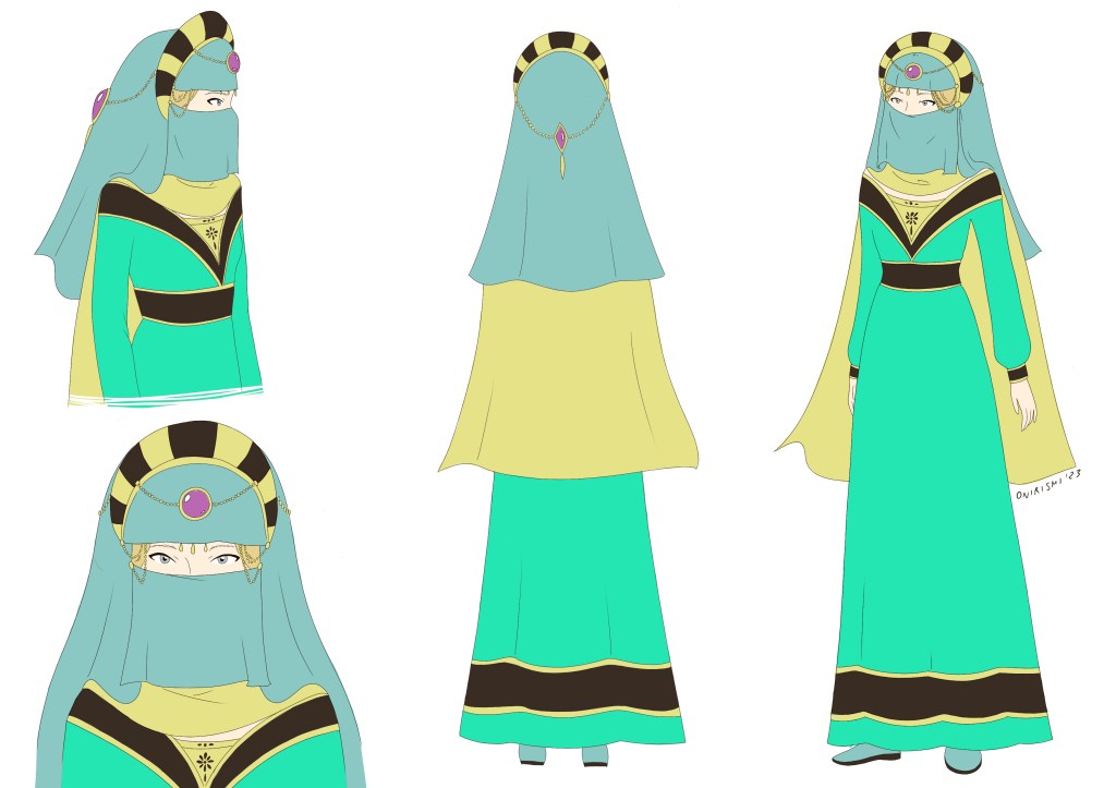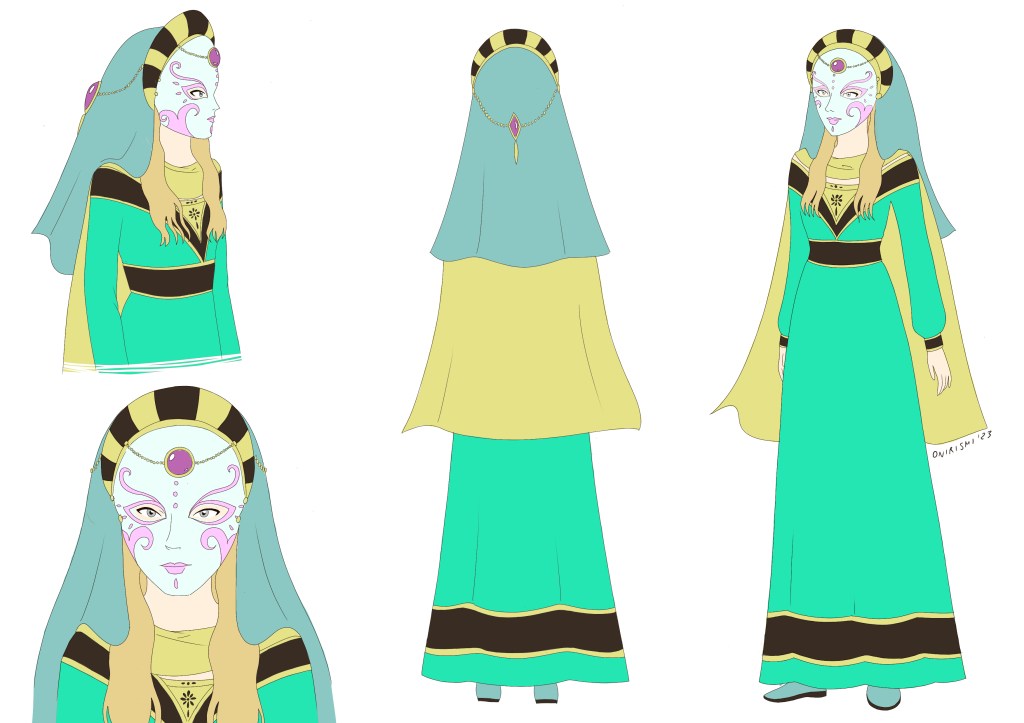 vi auguro buone feste natalizie con questa doppia illustrazione che ritrae un giovane Erfea e una giovanissima Miriel al ballo indetto per la maggiore età del primo. La disegnatrice di Onirismi ha progettato due versioni di Miriel: quale preferite? Quella con la maschera in madreperla o quella con il velo? Scrivetelo nei vostri commenti!
