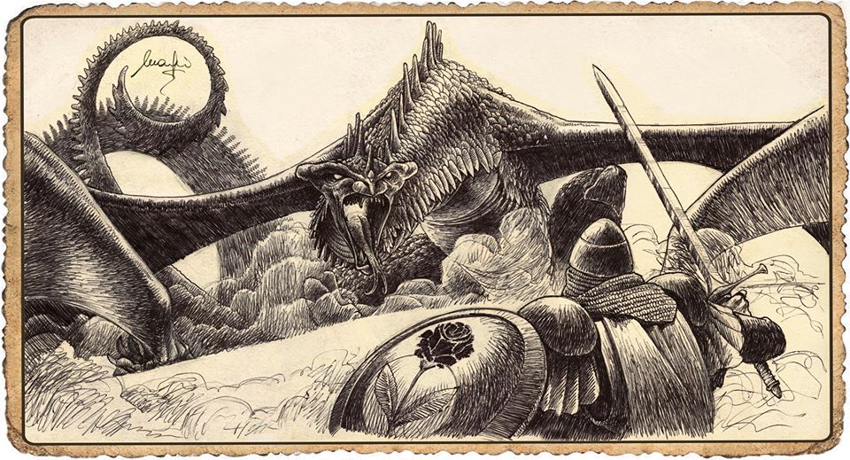 in questo articolo continuerò a raccontarvi la storia del Drago Morluin e della sua sete di vendetta contro i Numenoreani, colpevoli di aver ucciso i suoi cuccioli (potrete leggere o rileggere questa parte della storia qui: La collera di Morluin). Nessuno dei Numenoreani avrà il coraggio di sfidare il grande rettile…ad eccezione di uno.