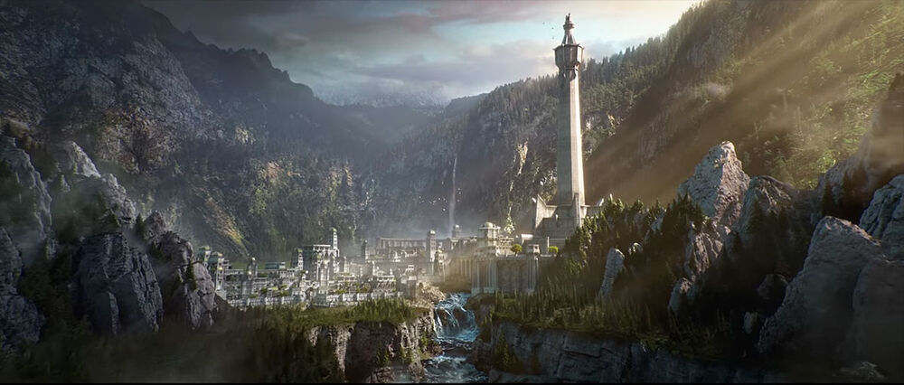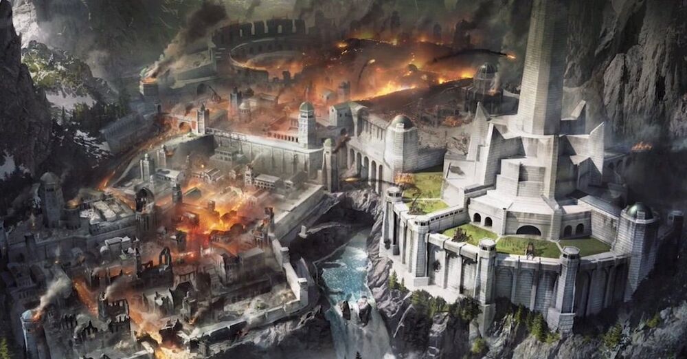 Bella, eppure micidiale, la capitale del regno di Gondor ammaliava il forestiero con la medesima grazia con la quale gli si sarebbe accanito contro, qualora costui avesse voluto farne scempio; nessun mortale avrebbe avuto la follia di prendere d’assalto i suoi poderosi bastioni o le sue imponenti torri.